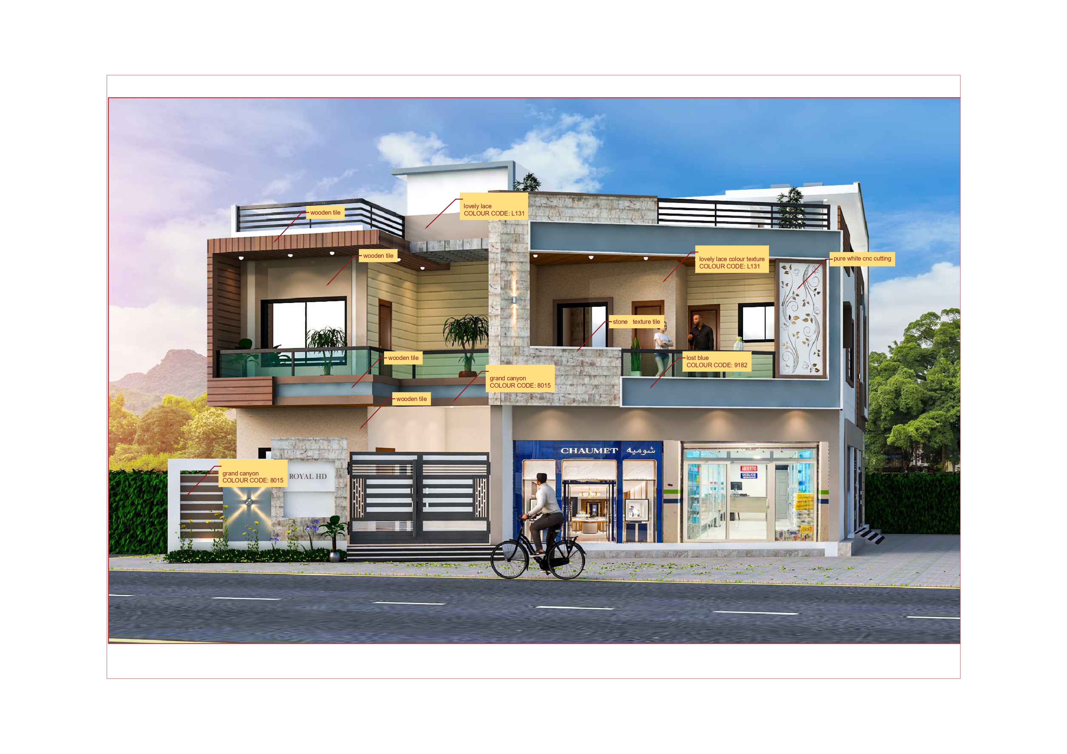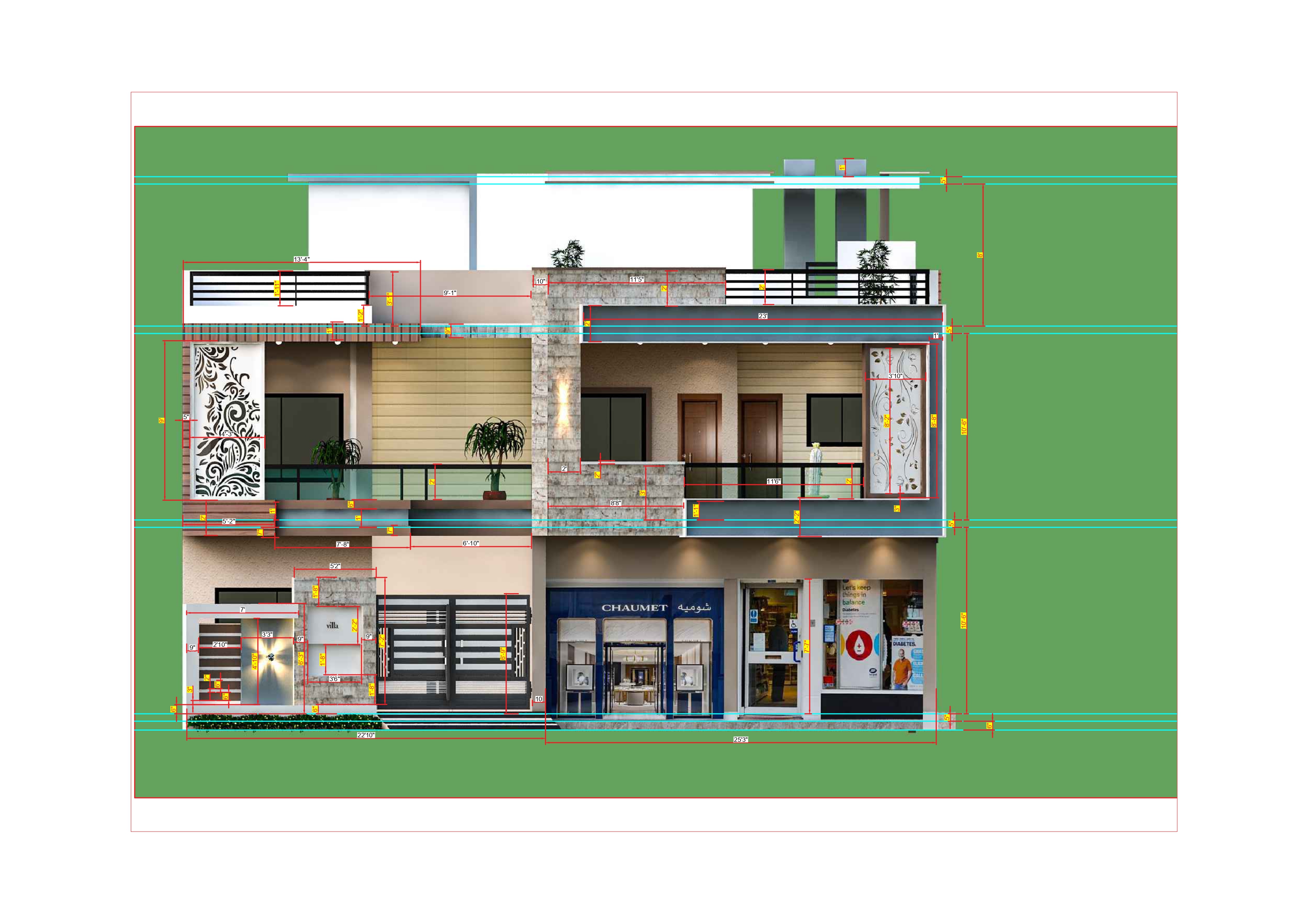 Here's are detailed of 3D elevation:* Vertical Proportions.