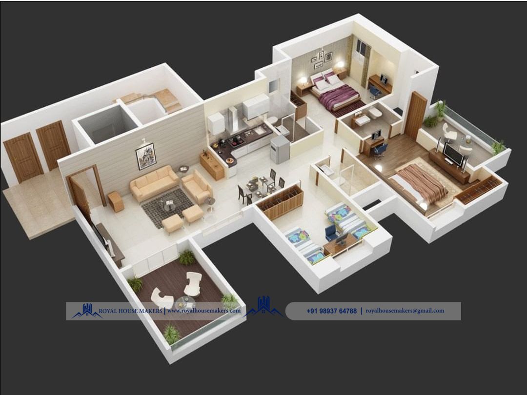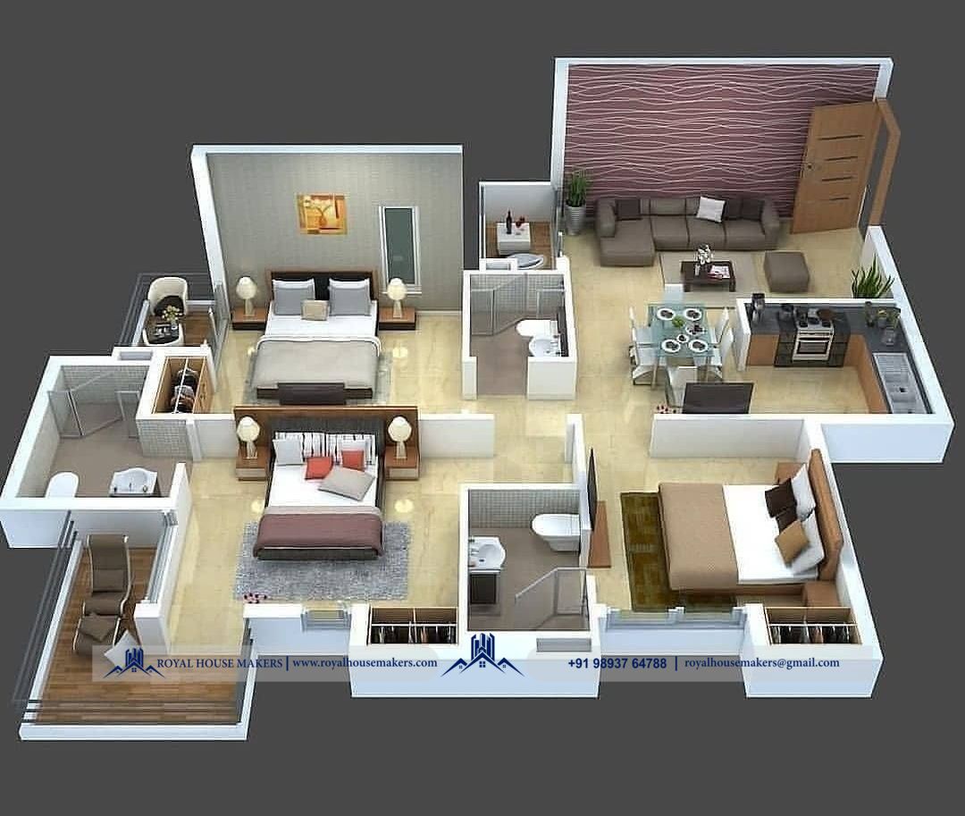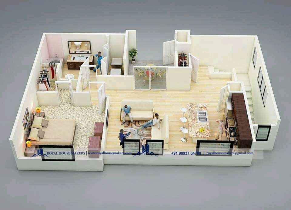 3D Floor-plan: A 3D floorplan is an image that shows the structure (wall, doors, widows) and layout. (fixtures, fittings, furniture) of a building, Property, office, or home in the three dimensions.