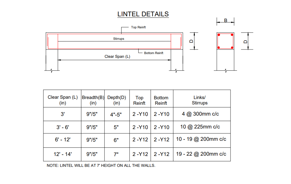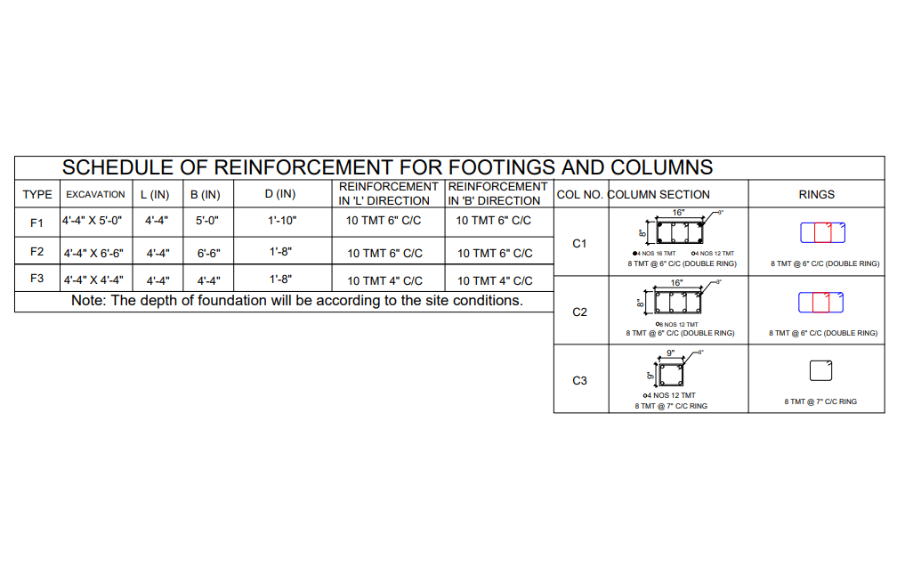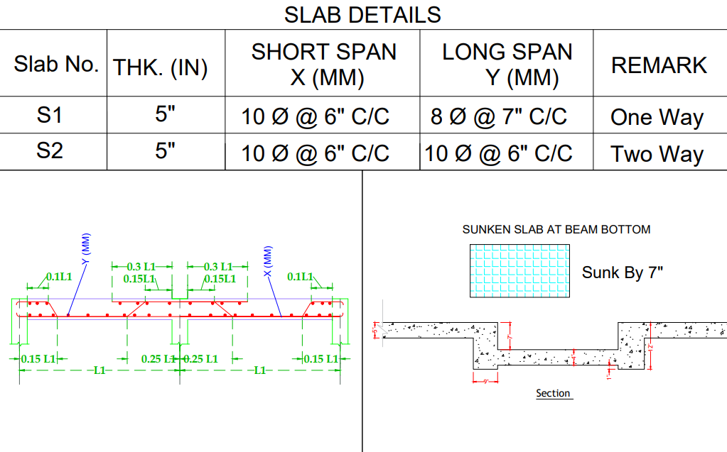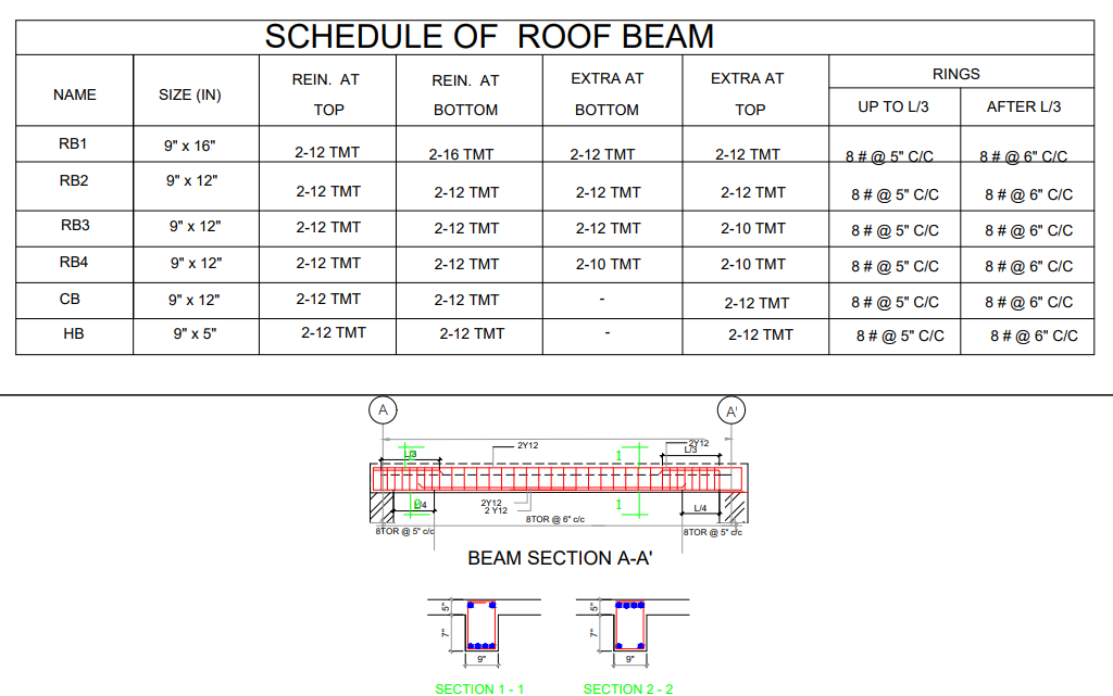 * Column & Beam details.